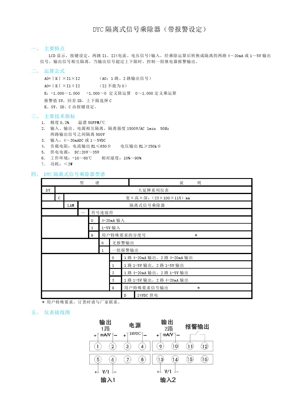 DYC隔離式信號(hào)乘除器(帶報(bào)警設(shè)定)