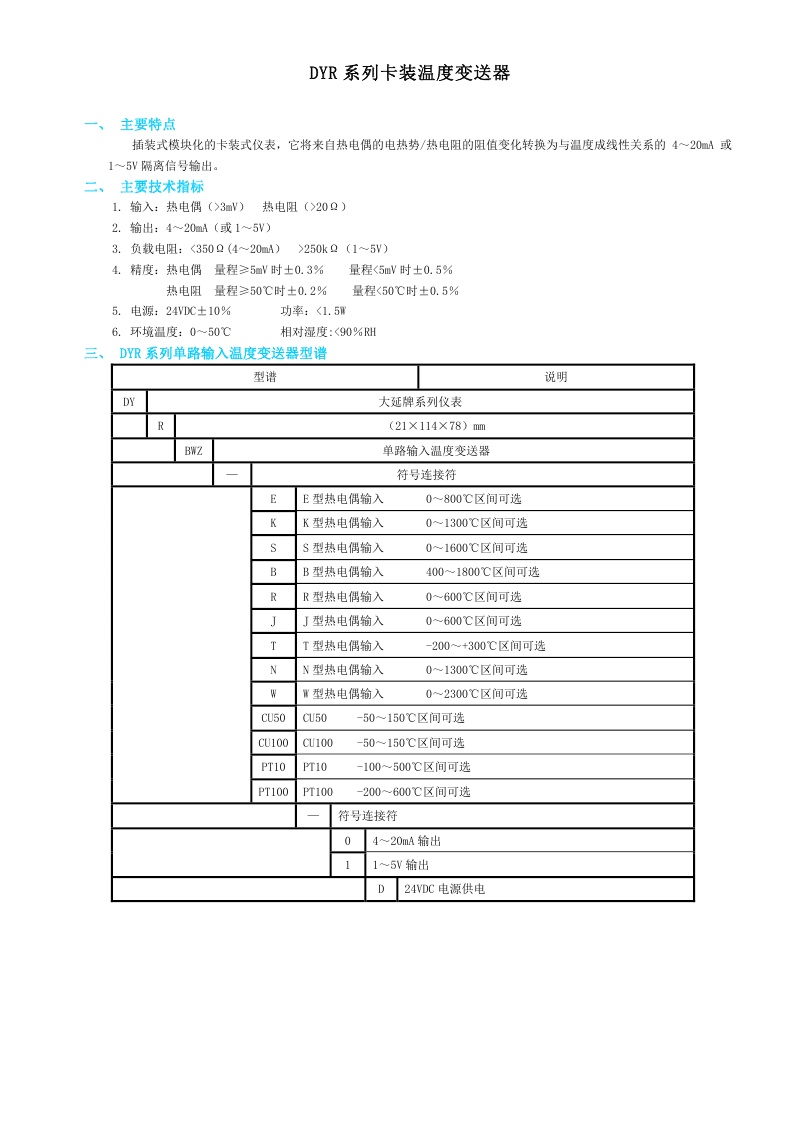 DYRBWZ系列卡裝溫度變送器