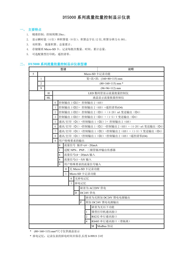 DY5000(H)系列流量批量控制顯示儀表