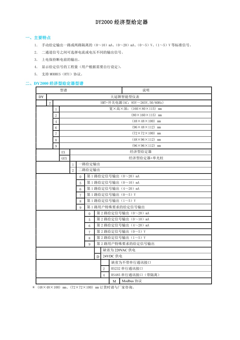 DY2000(EX)經(jīng)濟(jì)型給定器