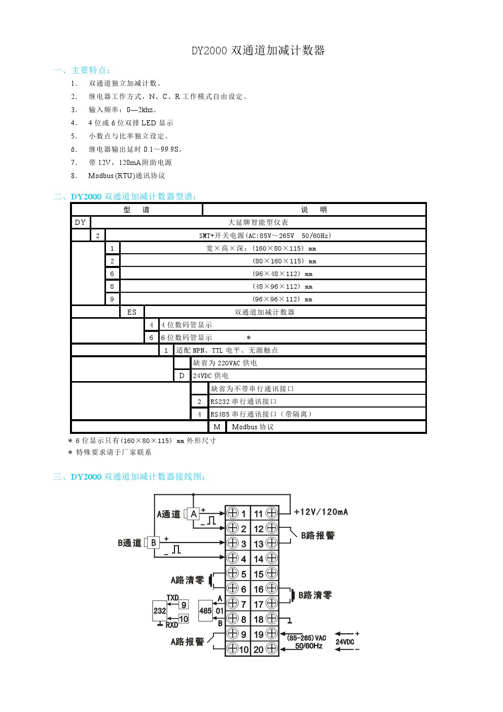 DY2000(ES)雙通道加減計(jì)數(shù)器