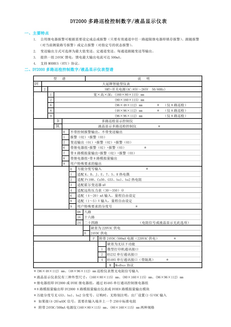 DY2000(D)多路巡檢控制數(shù)字/液晶顯示儀表
