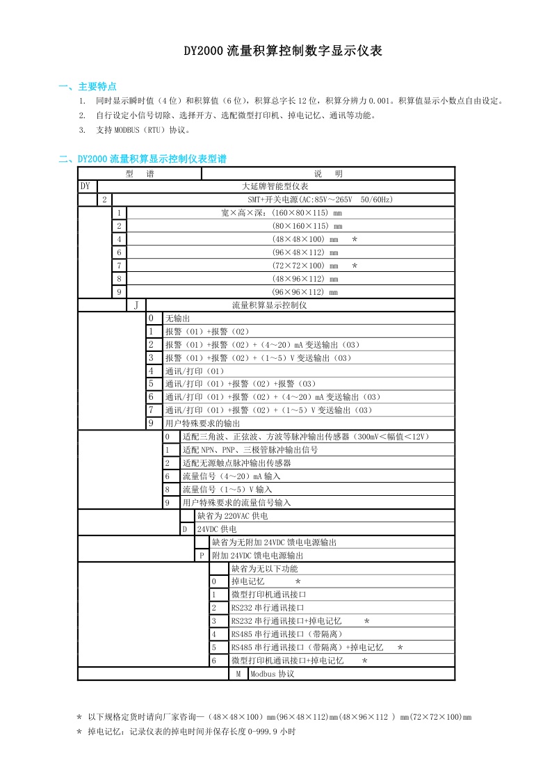 DY2000(J)流量積算控制數(shù)字顯示儀表