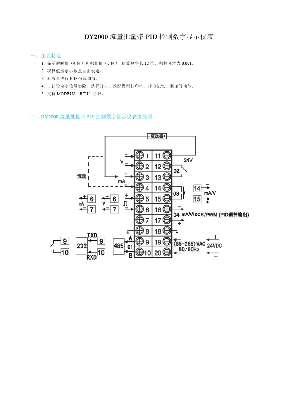 DY2000(AJ)流量積算帶PID調節(jié)控制數字顯示儀表