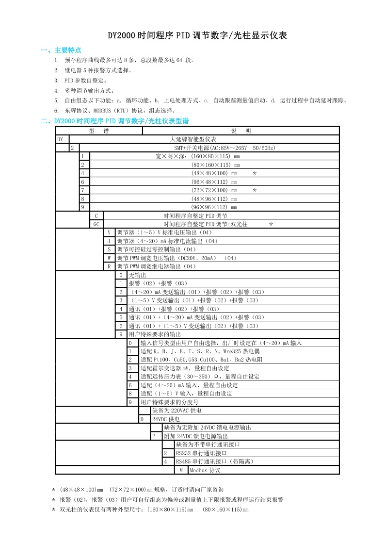 DY2000(C)時(shí)間程序PID調(diào)節(jié)數(shù)字/光柱顯示儀表