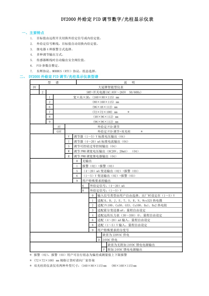 DY2000(AY)外給定PID調(diào)節(jié)數(shù)字/光柱顯示儀表
