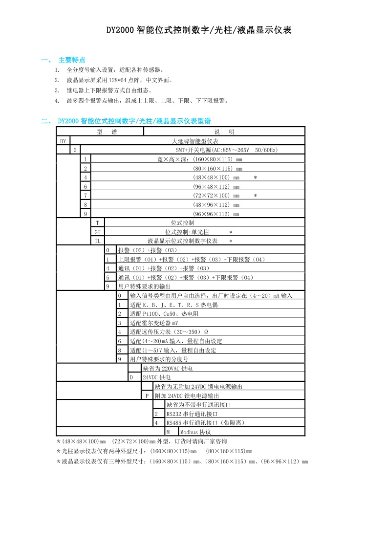 DY2000(T)智能位式控制數(shù)字/光柱/液晶顯示儀表