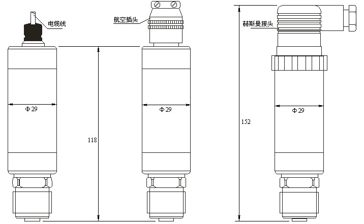 引線方式:電纜引線;航空插頭;赫斯曼接頭
