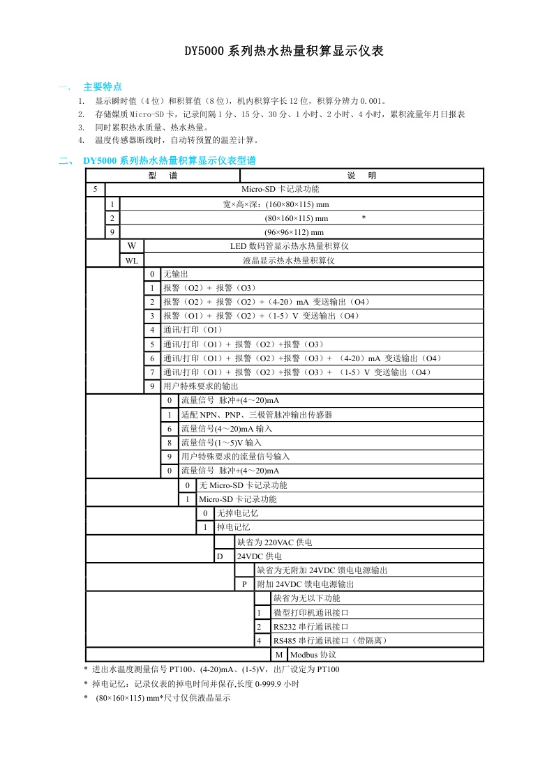 DY5000(W)系列熱水熱量積算顯示儀表